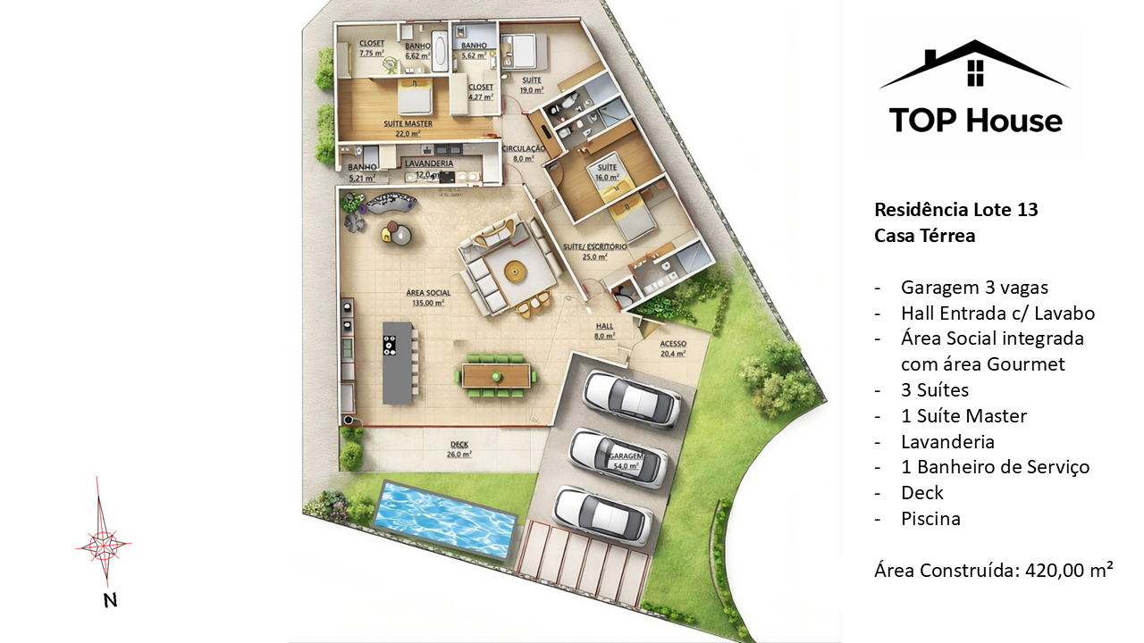 Top House é mais que um nome, simplesmente uma verdadeira declaração de estilo. Une a sofisticação do aço à calidez da madeira e da pedra natural, criando um refúgio que é puro design. A Top House é a materialização de um estilo de vida que não abre mão da elegância e segurança, o verdadeiro lugar para viver em família.